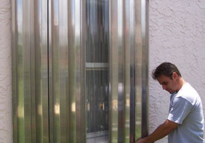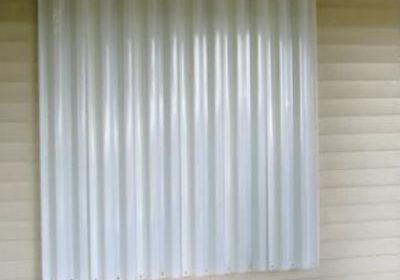 Los paneles acanalados u ondulados de aluminio o acero son extremadamente fuertes. Los paneles individuales se superponen entre sí para obtener mayor resistencia. Pueden instalarse en perfiles de aluminio que los reciben para anclarlos y fijarlos, montados permanentemente o atornilladas en su lugar.